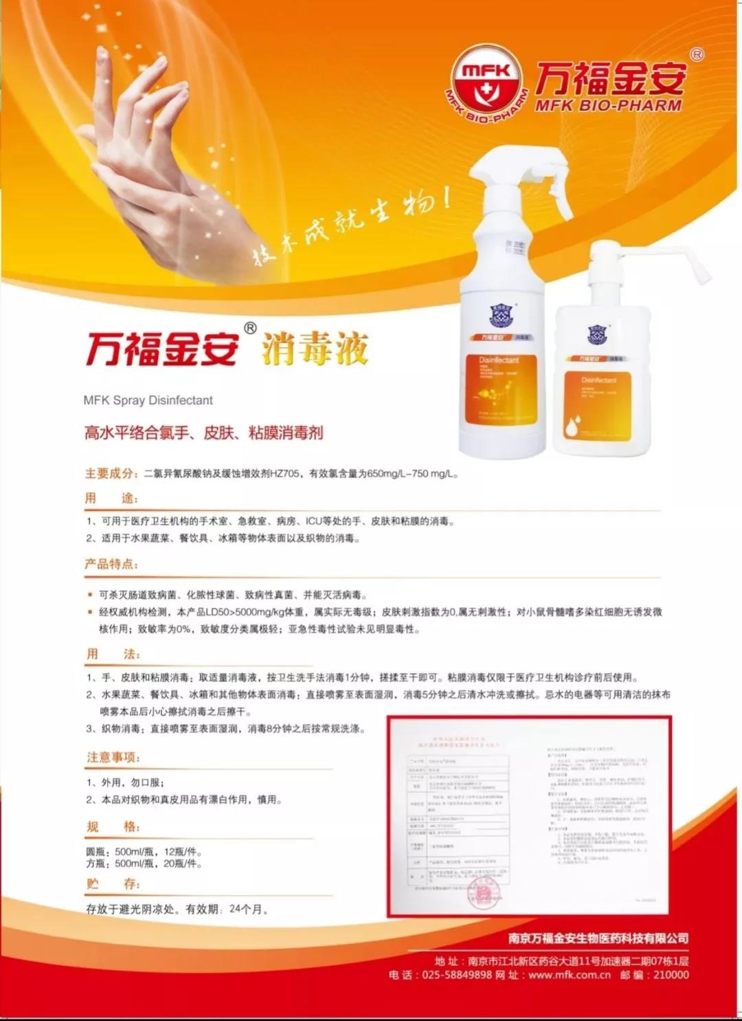 南京萬福金安生物醫(yī)藥科技有限公司專業(yè)研發(fā)、生產和銷售消毒劑、保健品、生物制品和精細化工產品的高科技企業(yè)。